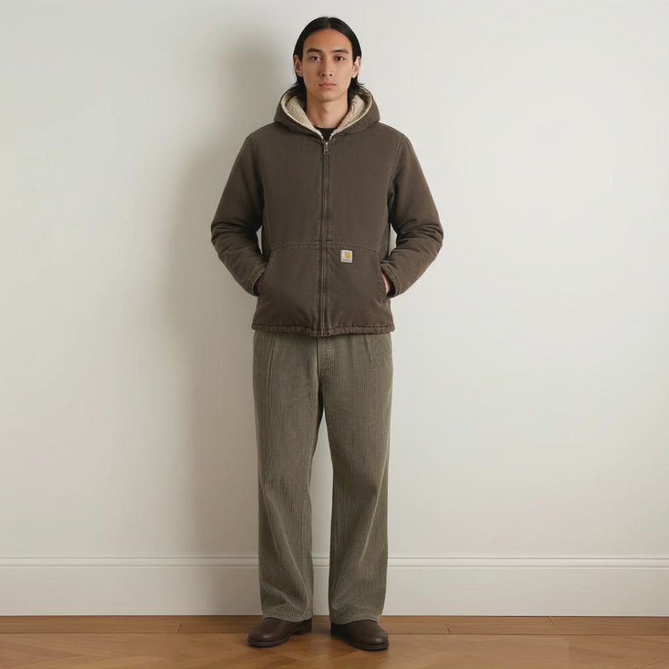 Built for durability and everyday versatility, the Carhartt WIP Mitch Jacket in brass combines midweight cotton canvas with cosy pile lining for year-round comfort.